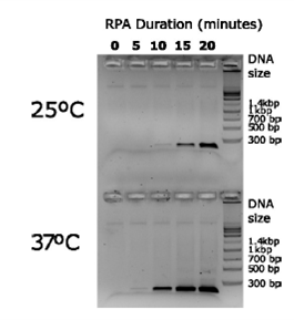 Figure 1: IG RPA Master Mix amplificated DNA in 15 minutes at 25°C, in 10 minutes at 37°C.