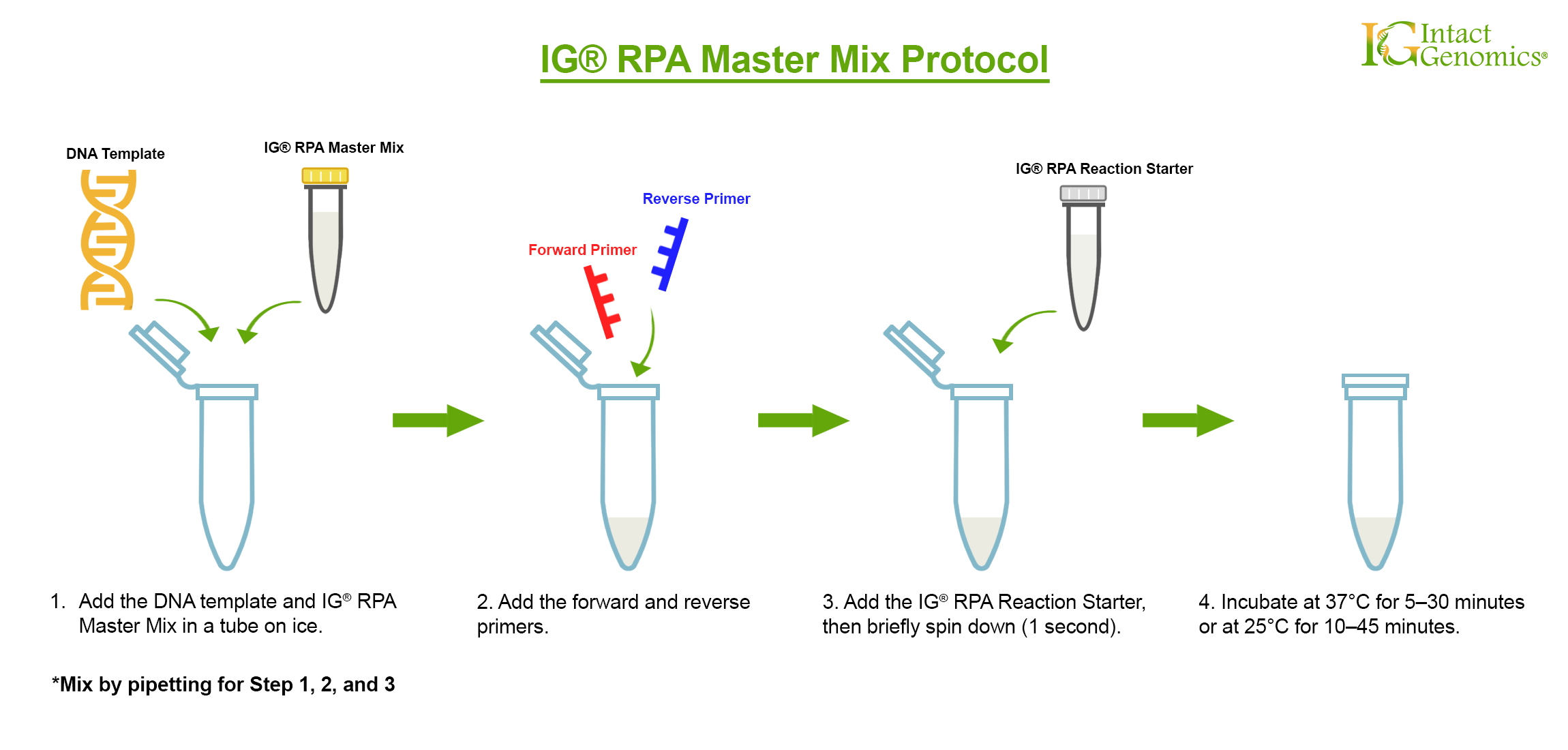 - Add the DNA template and IG RPA Master Mix in a tube on ice; mix by pipetting.