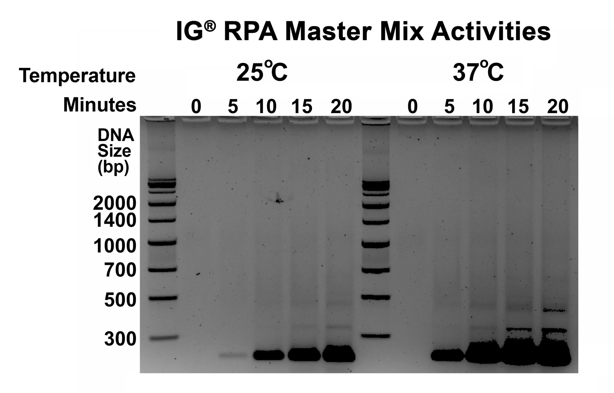 Figure 1: IG RPA Master Mix amplificated DNA in 10 minutes at 25°C, in 5 minutes at 37°C.